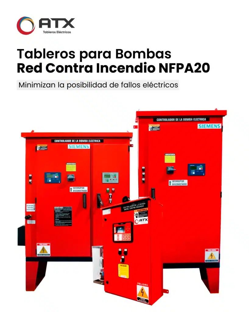 Tableros para sistemas de bombeo de presión constante con Variadores Inomaxtech, sistema contra incendio nacional bajo norma NFPA20 con tablero de bomba principal eléctrica y diesel con bomba jockey y controladores HydroSmart para bombas de achiquen en proyecto a institución pública.