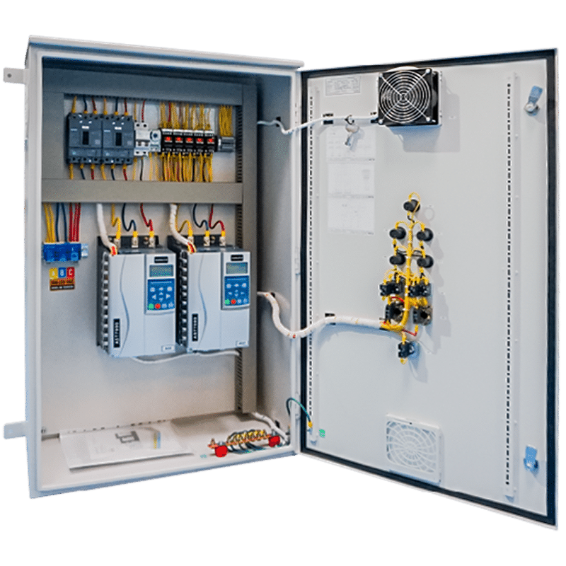 Los tableros eléctricos ATX para sistemas de presión constante con variadores de velocidad, tecnología vectorial y un PLC como maestro del sistema encargado de la administración y operación del sistema de bombeo.