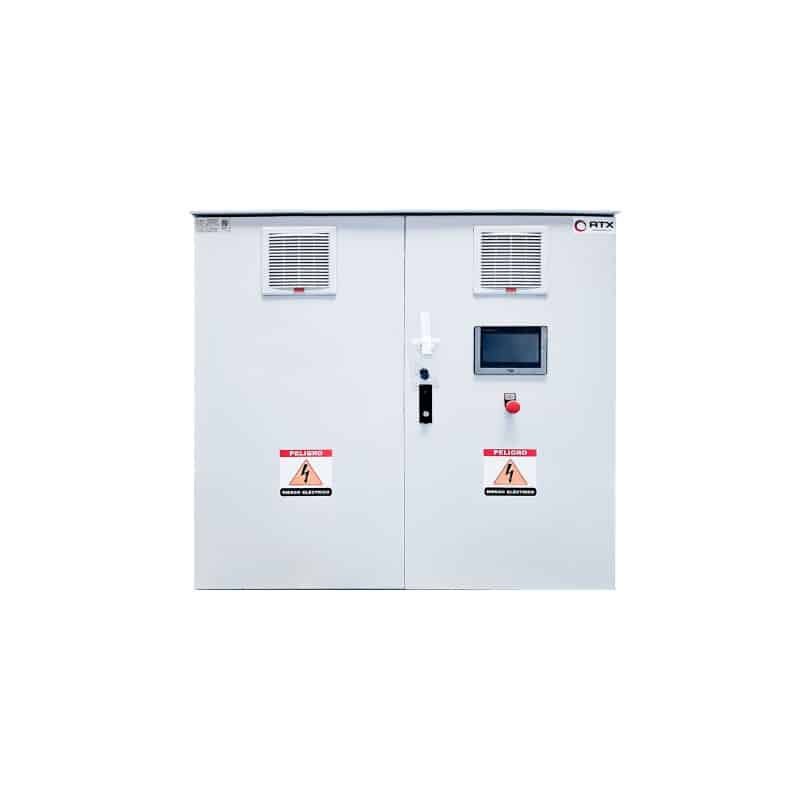Solución ATX profesional para cuatro bombas de 25 Hp a 440 Vac. Integra variadores de velocidad Inomaxtech con control táctil visual. Protege los equipos y optimiza el rendimiento hídrico global.
