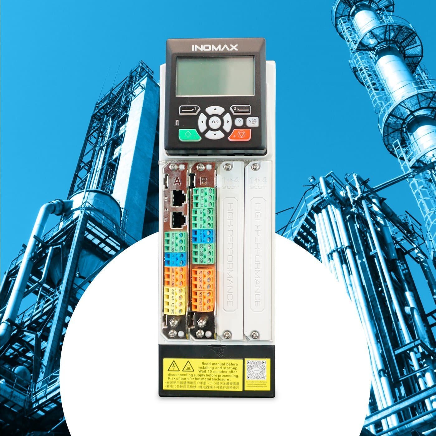 Variador de velocidad premium INOMAXTECH con tecnología DTC (Direct Torque Control) para 400 Hp. Opera a 440 Vac y entrega 487 Amp. Incluye soporte para chopper de frenado externo, ofreciendo un control excepcional del par motor en aplicaciones industriales críticas.