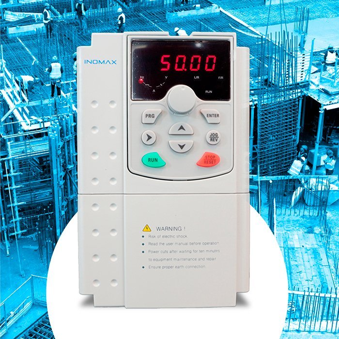 Variador de velocidad para 5 Hp marca INOMAXTECH. Diseñado para 440 Vac con salida de 9 A y tecnología vectorial con chopper de frenado integrado. Es la unidad perfecta para el control preciso de pequeños motores industriales, garantizando par constante.